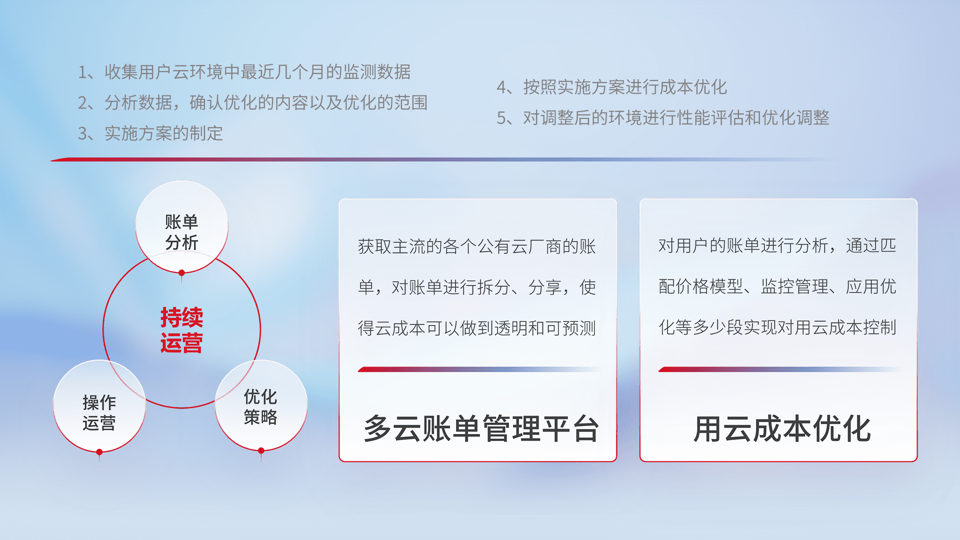 监控业务系统资源开销,,,对资源的消耗精确计量,,,,实现费用的透明化管理,,,,不断提升资源使用率,,,调整资源购买方式,,,降低资源费用成本,,用云成本可预测、、用云费用可优化,,云资源配额有据可依。。